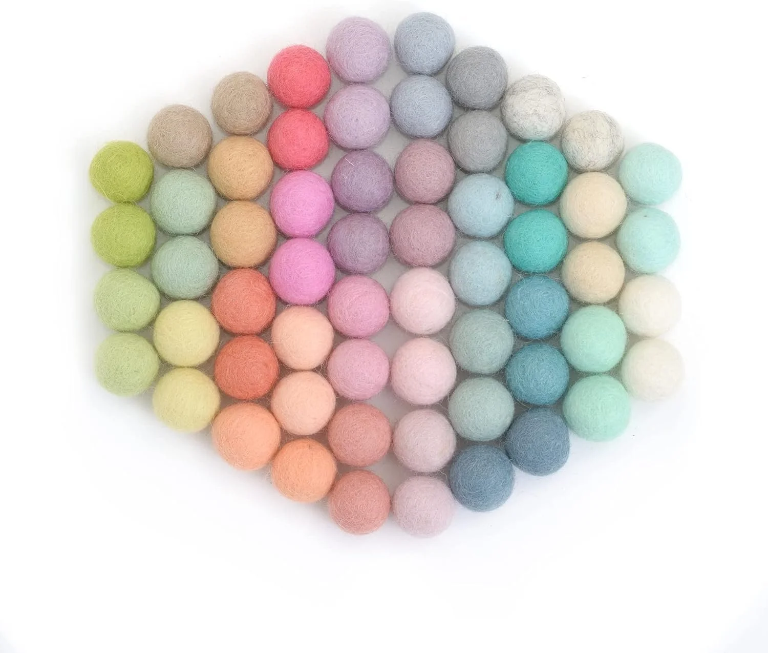 Felt balls hand-crafted with 100% wool! You’ll never go back to using craft store pom poms. Be sure to order the 2cm size!